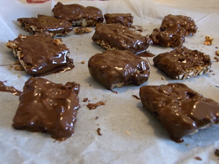 Og så lige ud på altanen og lufttørre, og voila! Så var der sunde snacks med (sund?!) mørk chokolade …
