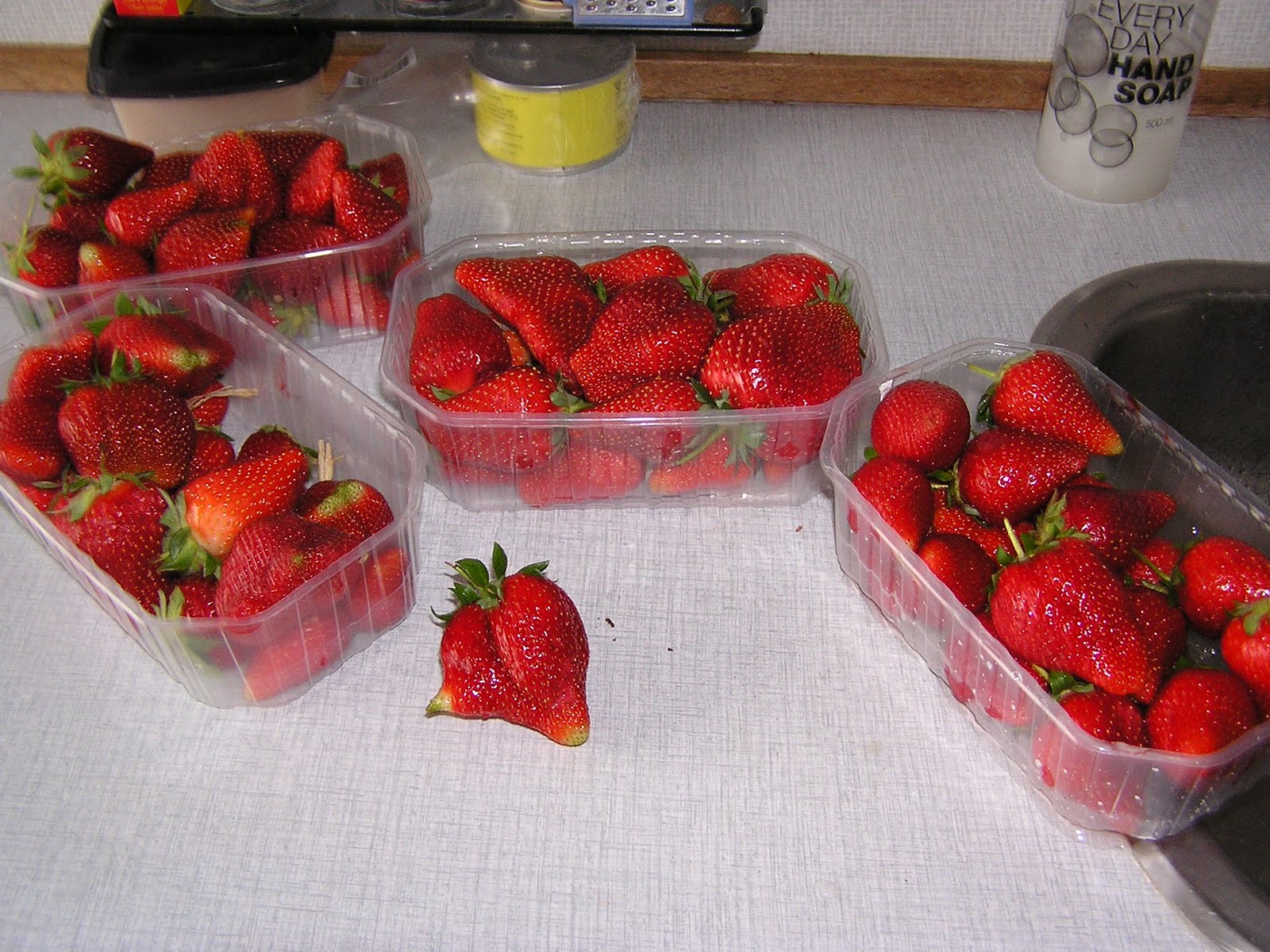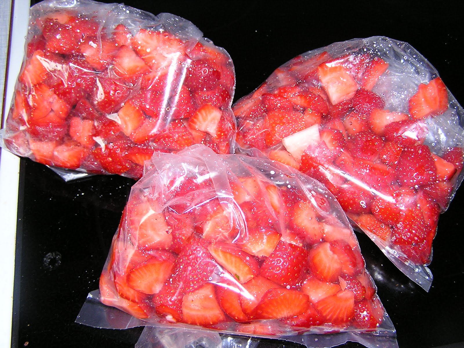 I denne uge kom jeg forbi Kvikkeliky, som havde en bakke jordbær for 10!!! kroner! Ok, det var italienske jordbær, men… når man nu ikke lige har dem i køkkenhaven eller bor i nærheden af en plukkemark, så var de et godt supplement til fryseren og de kommende smoothies: