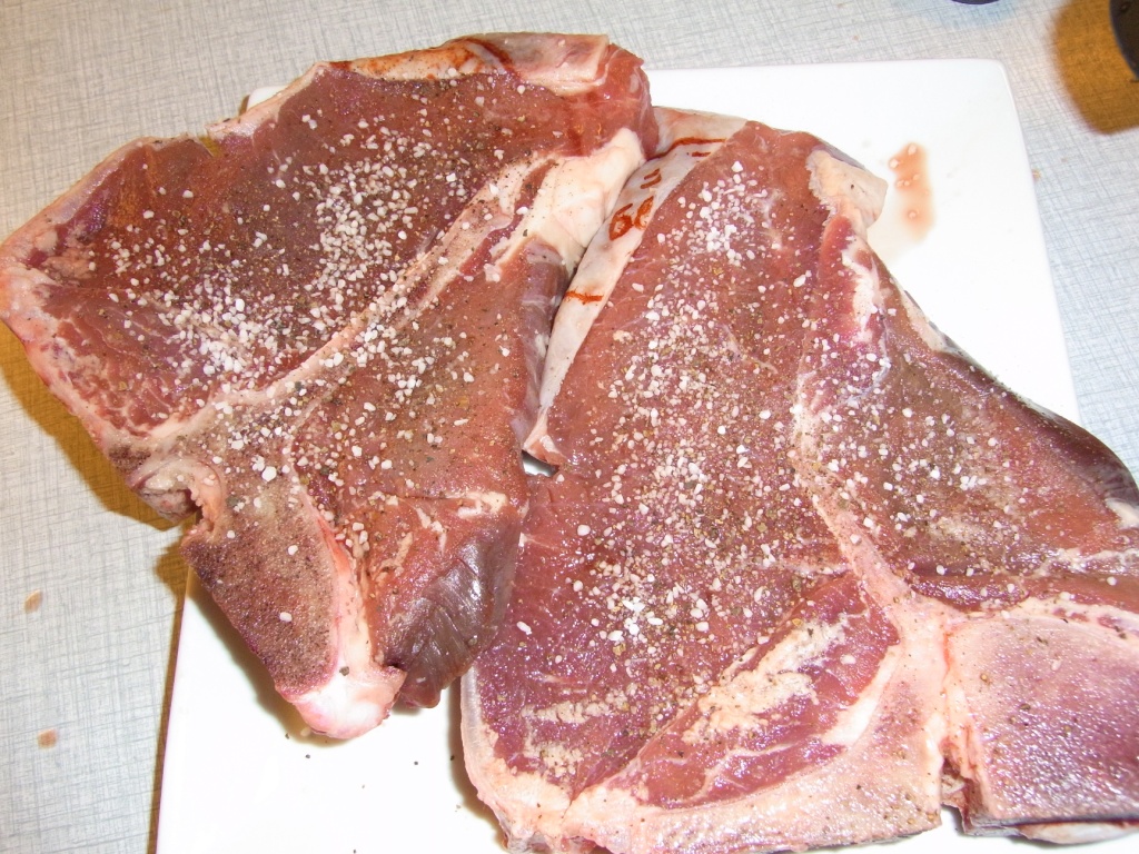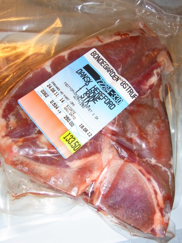 Idag var foruden kød-hente-dag, også en dag, hvor vi skulle prøve en omgang af Jørgens kød af de mere reelle stykker – nemlig en T-knogle.