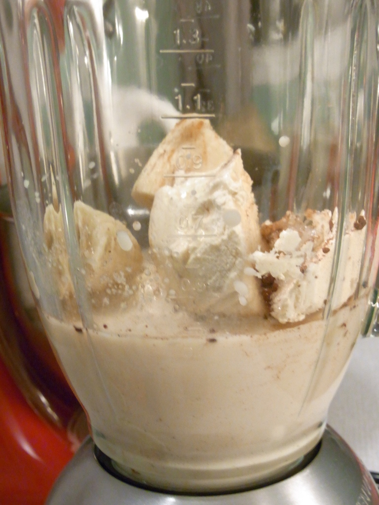 Men ned i blenderen kom en rest sojais, en omgang rismælk, en banan og lidt sukker/vanille.