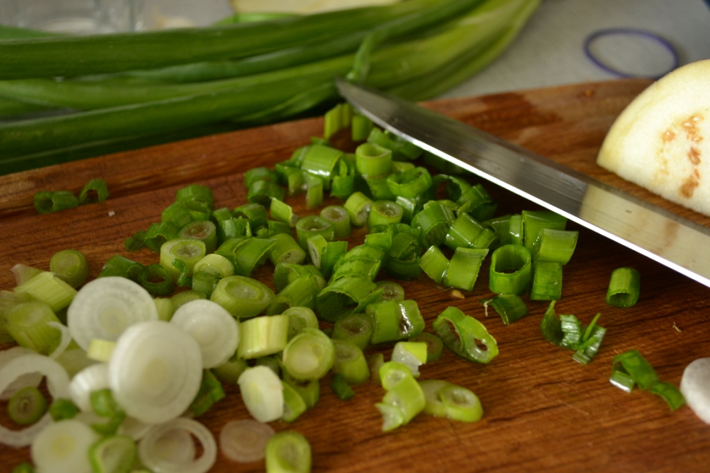 Herefter choppede jeg lidt forårsløg og aubergine så de så fine ud: